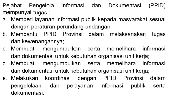 Tugas dan Tanggungjawab PPID dan PPID Pelaksana