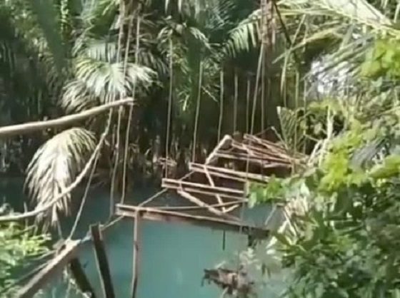 Video yang menampilkan sejumlah pelajar harus melintasi jembatan... Selengkapnya